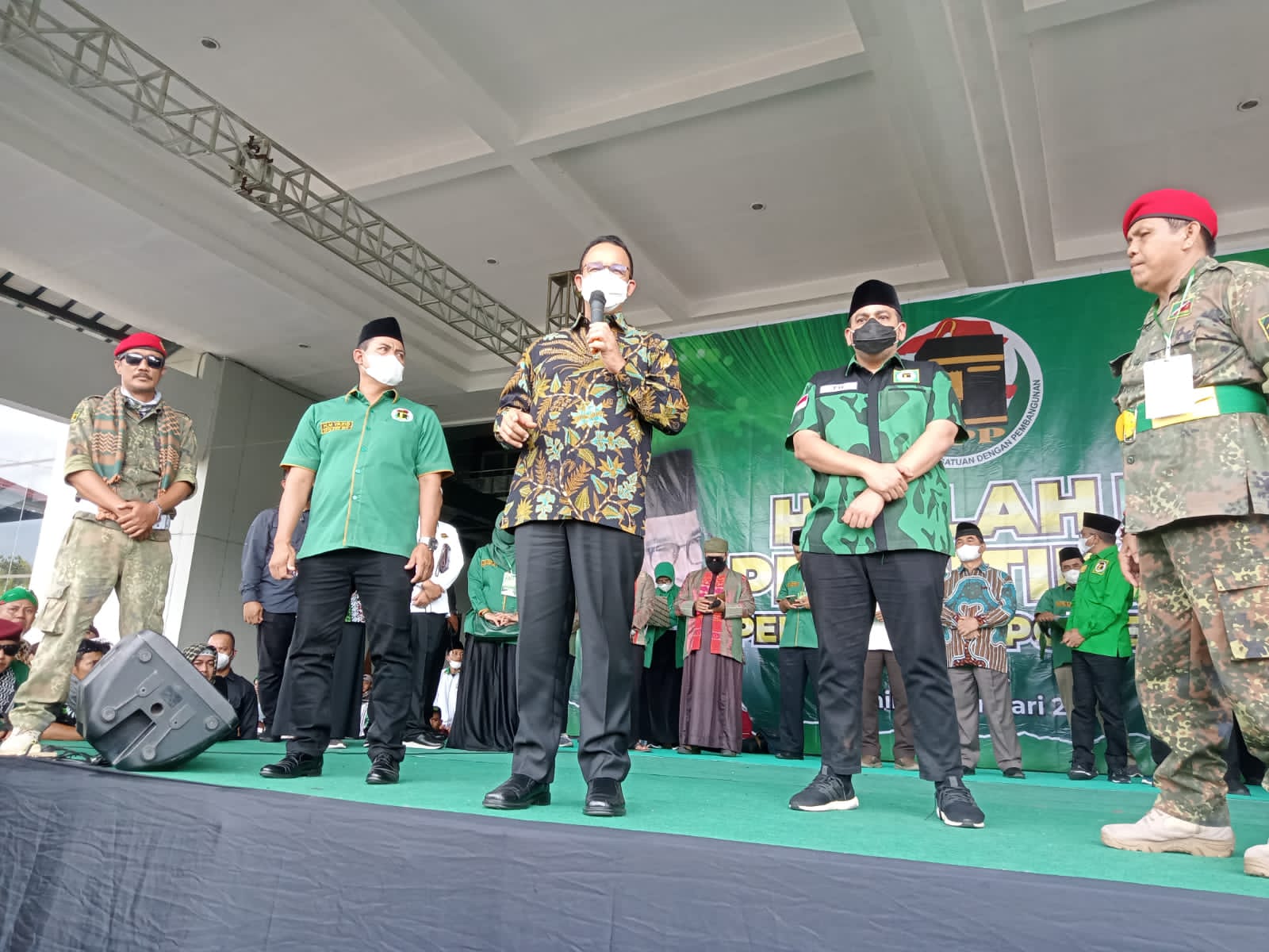 Yogyakarta (PM) - Peringatan hari lahir Partai Persatuan Pembangunan (Harlah PPP) ke 49 yang digelar oleh Dewan Pimpinan Wilayah (DPW) PPP DIY terbilang istimewa. Pasalnya, kehadiran Gubernur DKI Jakarta, Anies Baswedan, seakan menjadi magnet. Ribuan massa dan simpatisan PPP yang memadati panggung terbuka di halaman Jogja Expo Center (JEC), mengelu-elukan Anies. Bahkan, seusai Anies menyampaikan pidato politik, massa dan simpatisan PPP sontak berteriak, 'Anies Presiden!' 'Anies Presiden!'.